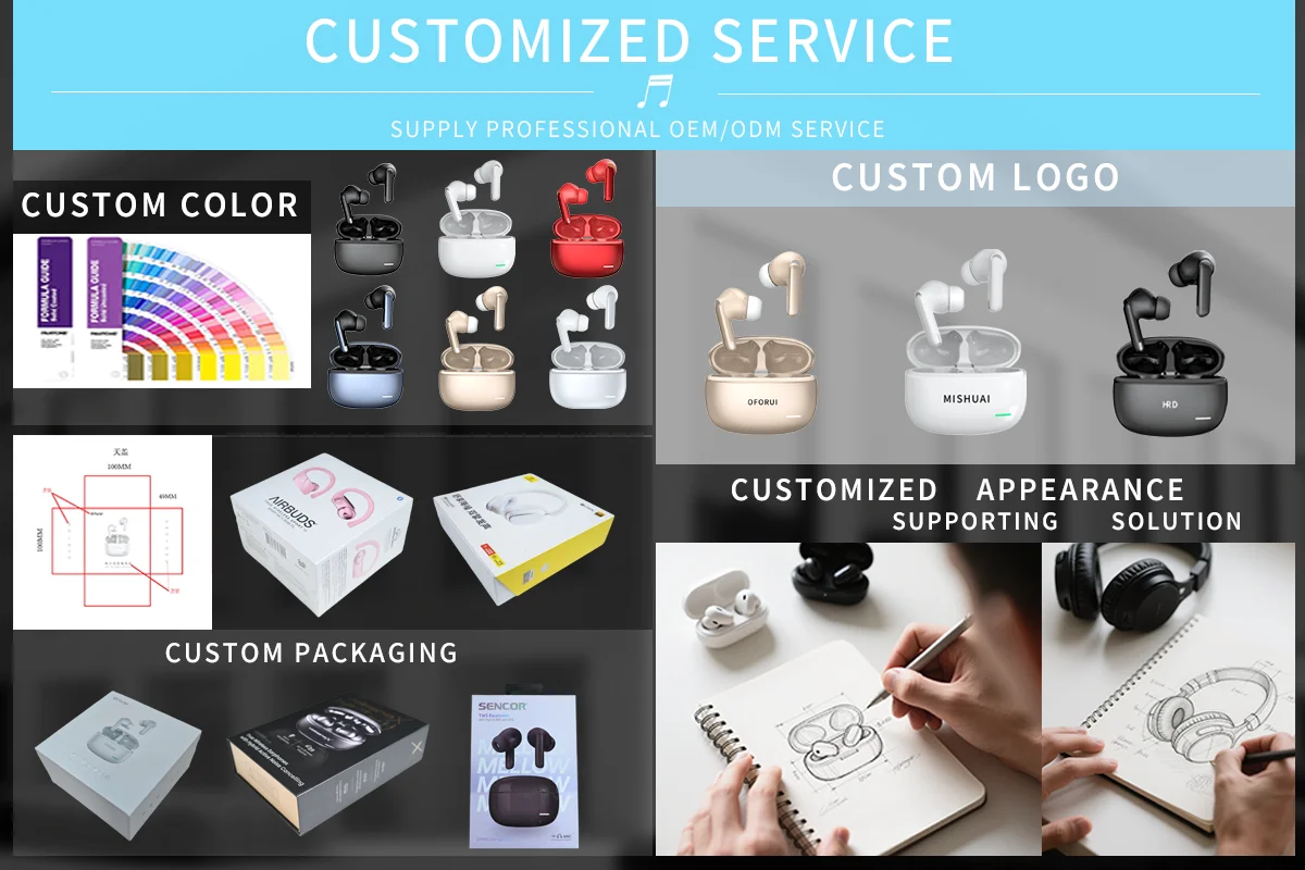 OEM TWS Auriculares Fone De Ouvido Auriculares Inalámbricos Personalizados Blue Tooth Auriculares con LED Batería Indicada